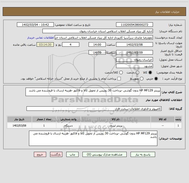 نام دستگاه خریدار:اداره کل بنیاد مسکن انقلاب اسلامی استان خراسان رضوی