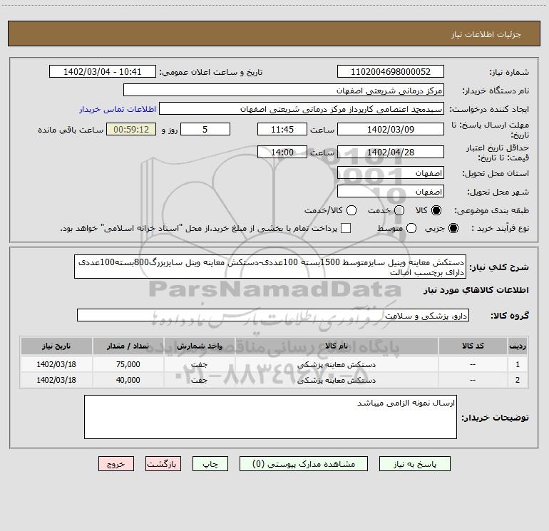 نام دستگاه خریدار:مرکز درمانی شریعتی اصفهان
