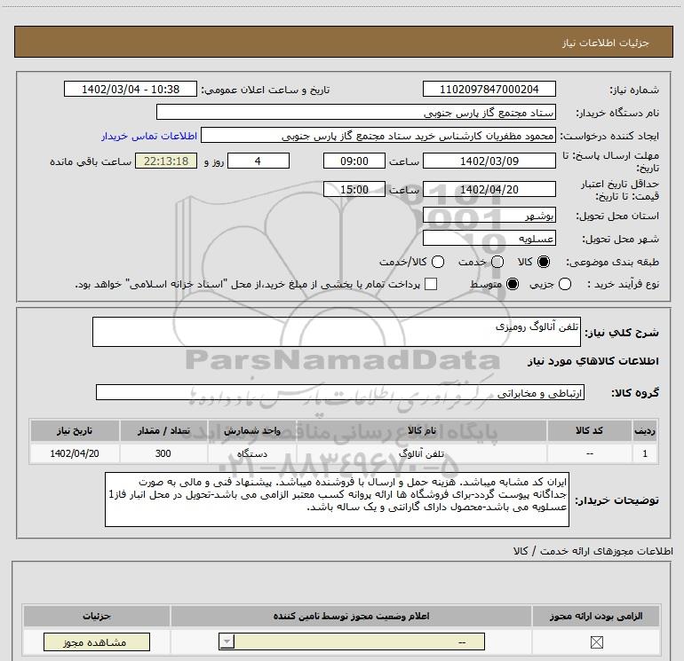 | 1 | -- | تلفن آنالوگ | دستگاه | 300 | 1402/04/20 |