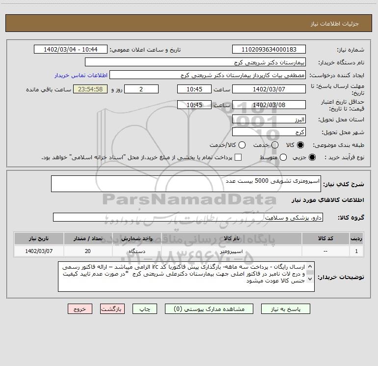 نام دستگاه خریدار:بیمارستان دکتر شریعتی کرج