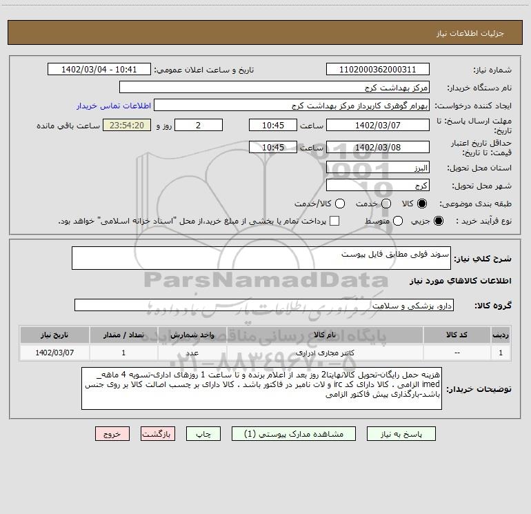 نام دستگاه خریدار:مرکز بهداشت کرج