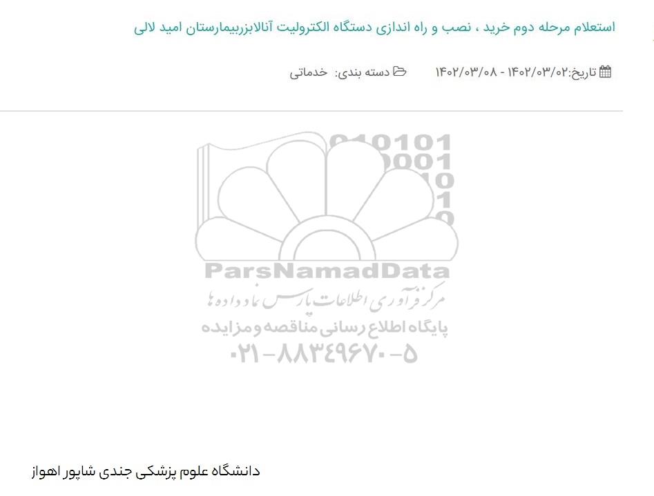 استعلام مرحله دوم خرید ، نصب و راه اندازی دستگاه الکترولیت آنالایزر برای بیمارستان امید لالی