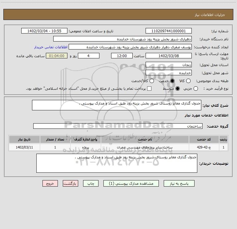 توضیحات خریدار:جدول گذاری معابر روستای شرور بخش بزینه رود طبق اسناد و مدارک پیوستی .