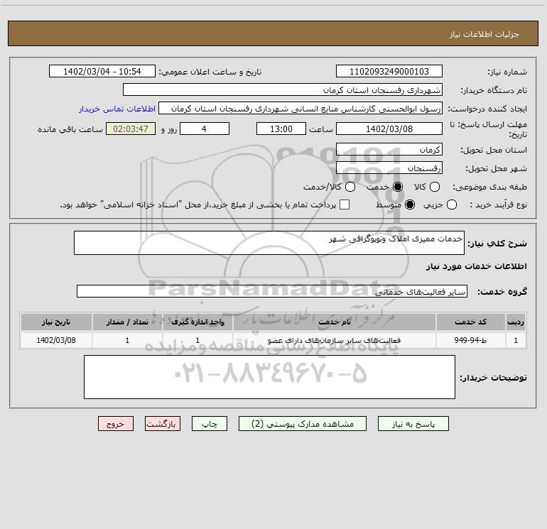 نام دستگاه خریدار:شهرداری رفسنجان استان کرمان