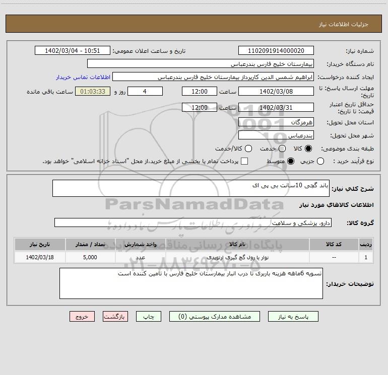 شرح کلی نیاز: باند گچی 10سانت بی پی ای