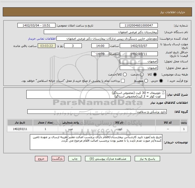 شرح کلی نیاز: نئوپتیمال = 30 کیت (مخصوص استاگو)