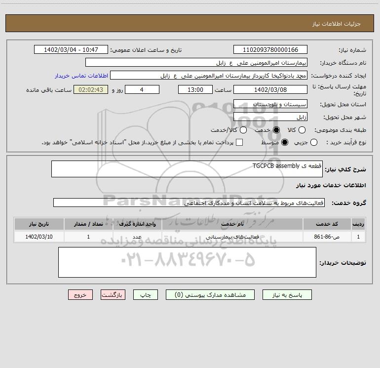 نام دستگاه خریدار:بیمارستان امیرالمومنین علی ع زابل