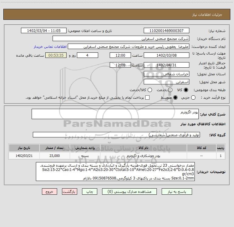 نام دستگاه خریدار:شرکت مجتمع صنعتی اسفراین