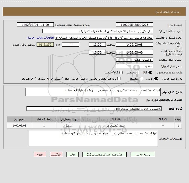 نام دستگاه خریدار:اداره کل بنیاد مسکن انقلاب اسلامی استان خراسان رضوی
