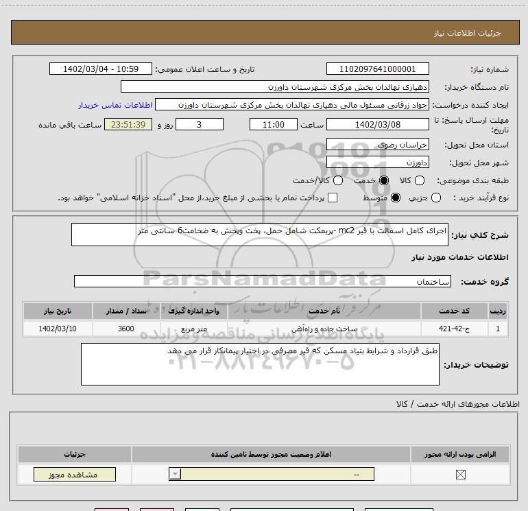 نام دستگاه خریدار:دهیاری نهالدان بخش مرکزی شهرستان داورزن
