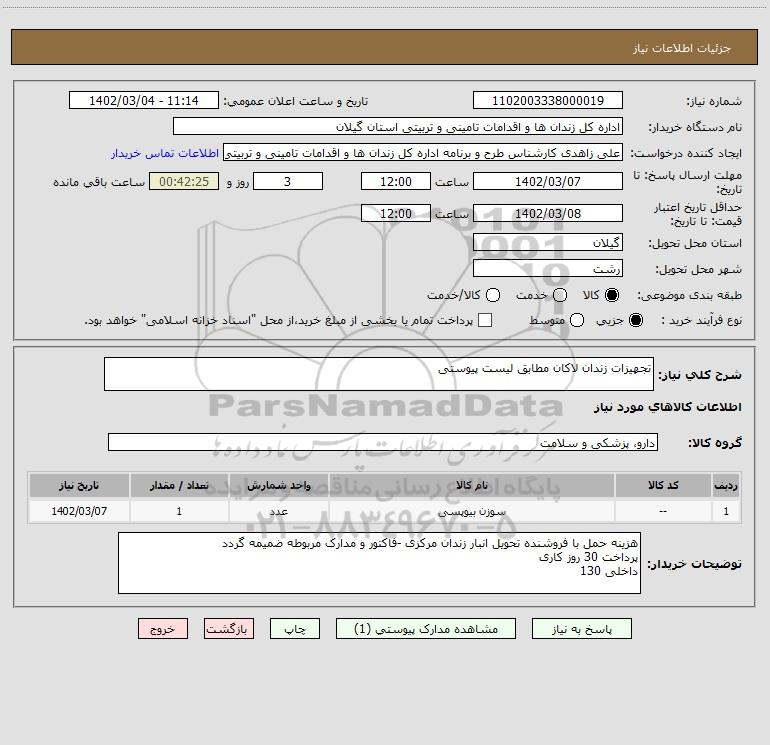 شرح کلی نیاز: تجهیزات زندان لاکان مطابق لیست پیوستی