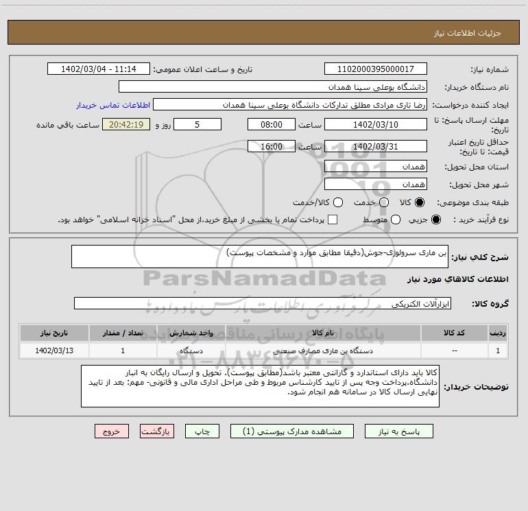 نام دستگاه خریدار:دانشگاه بوعلی سینا همدان