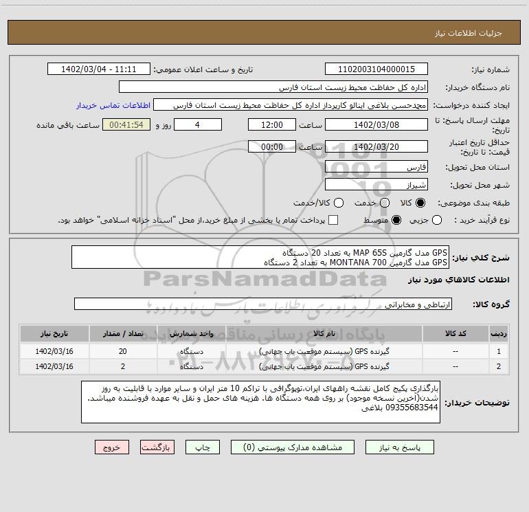 نام دستگاه خریدار:اداره کل حفاظت محیط زیست استان فارس