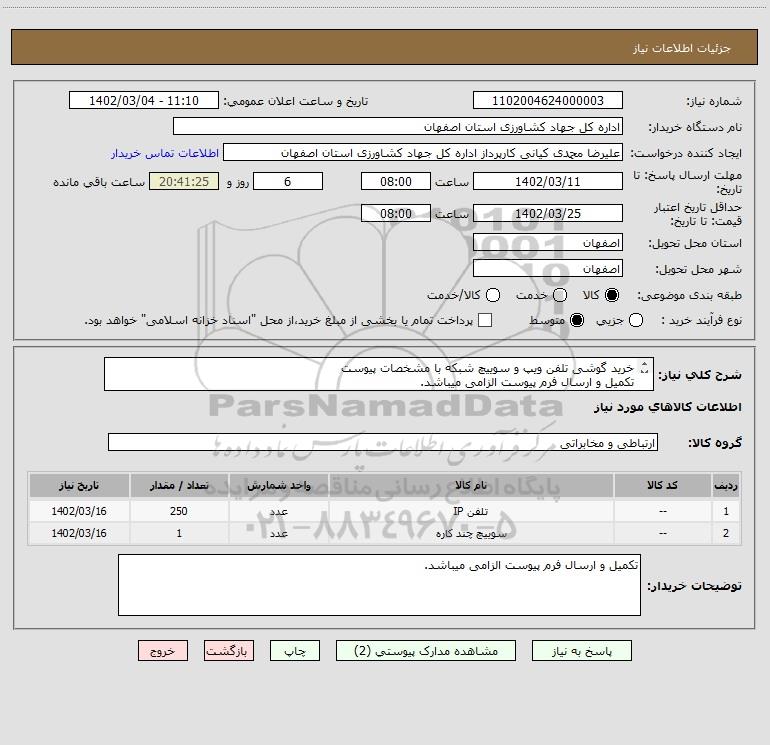 شرح کلی نیاز: خرید گوشی تلفن ویپ و سوییچ شبکه با مشخصات پیوست تکمیل و ارسال فرم پیوست الزامی میباشد.