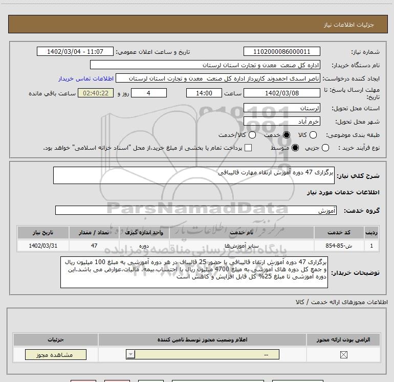 نام دستگاه خریدار:اداره کل صنعت معدن و تجارت استان لرستان