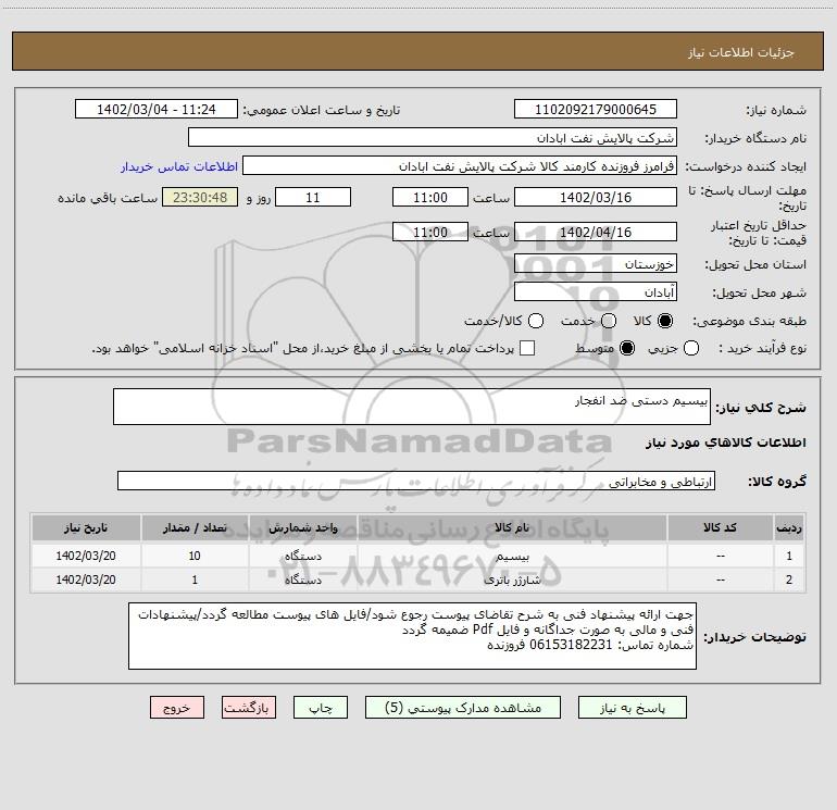 نام دستگاه خریدار:شرکت پالایش نفت ابادان