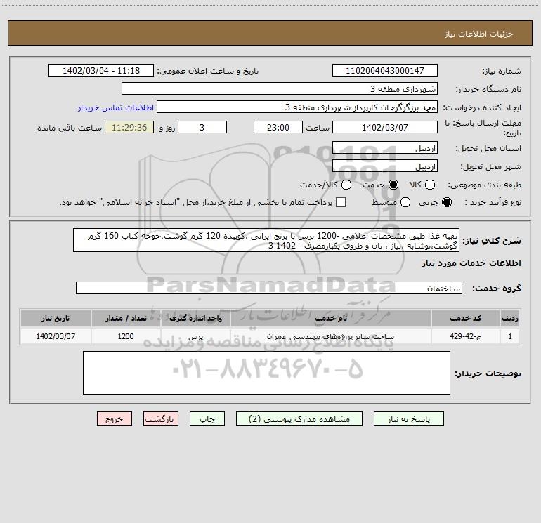 استعلام تهیه غذا طبق مشخصات اعلامی -1200 پرس با برنج ایرانی ،کوبیده 120 گرم گوشت،جوجه کباب 160 گرم گوشت،نوشابه ،پیاز ، نان و ظروف یکبارمصرف -1402-3, استعلام تهیه غذا طبق مشخصات اعلامی -1200 پرس با برنج ایرانی ،کوبیده 120 گرم گوشت،جوجه کباب 160 گرم گوشت،نوشابه ،پیاز ، نان و ظروف یکبارمصرف -1402-3