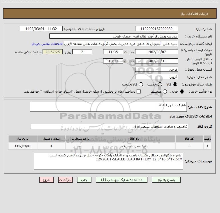 نام دستگاه خریدار:مدیریت پخش فرآورده های نفتی منطقه قزوین