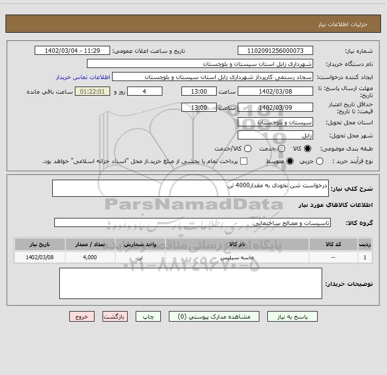شرح کلی نیاز: درخواست شن نخودی به مقدار4000 تن