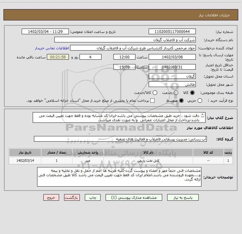 نام دستگاه خریدار:شرکت آب و فاضلاب گیلان
