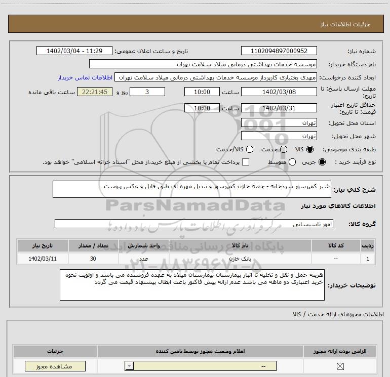 نام دستگاه خریدار:موسسه خدمات بهداشتی درمانی میلاد سلامت تهران