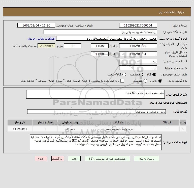 شرح کلی نیاز: تیوپ پمپ آرتروسکوپی 50 عدد