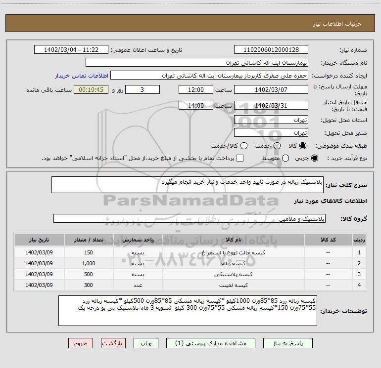 نام دستگاه خریدار:بیمارستان ایت اله کاشانی تهران