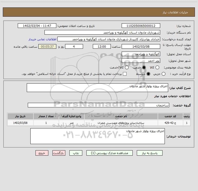شرح کلی نیاز: اجرای پروژه بولوار شهر مادوان