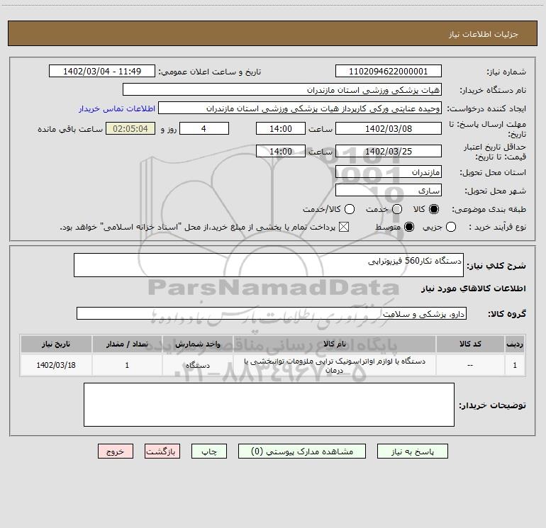 شرح کلی نیاز: دستگاه تکار560 فیزیوتراپی