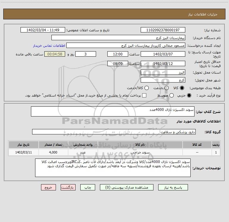 شرح کلی نیاز: سوند اکسیژن نازال 4000عدد