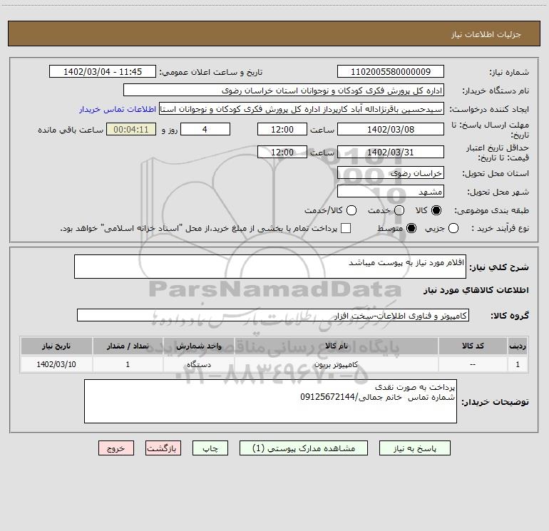 نام دستگاه خریدار:اداره کل پرورش فکری کودکان و نوجوانان استان خراسان رضوی