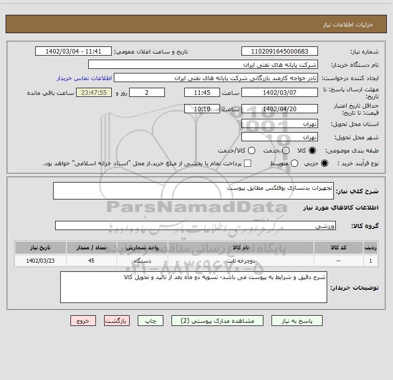 شرح کلی نیاز: تجهیزات بدنسازی بوفلکس مطابق پیوست