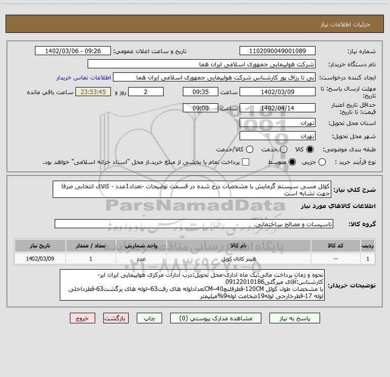 نام دستگاه خریدار:شرکت هواپیمایی جمهوری اسلامی ایران هما