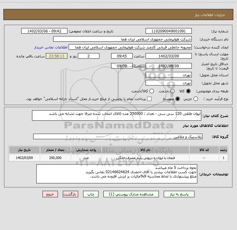 نام دستگاه خریدار:شرکت هواپیمایی جمهوری اسلامی ایران هما