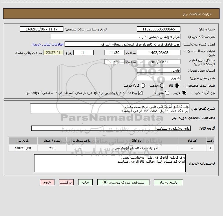 نام دستگاه خریدار:مرکز اموزشی درمانی نمازی