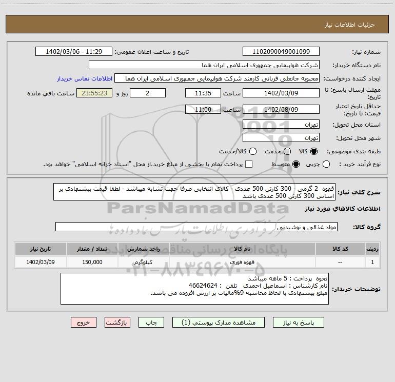 نام دستگاه خریدار:شرکت هواپیمایی جمهوری اسلامی ایران هما