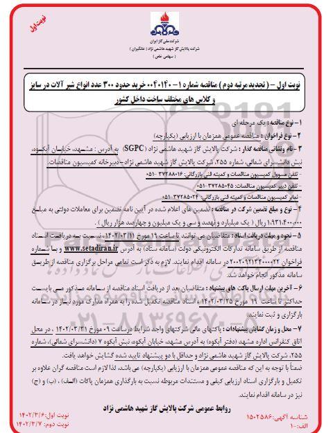 تجدید مناقصه خرید حدود 300 عدد انواع شیرآلات در سایز و کلاس های مختلف, تجدید مناقصه خرید حدود 300 عدد انواع شیرآلات در سایز و کلاس های مختلف