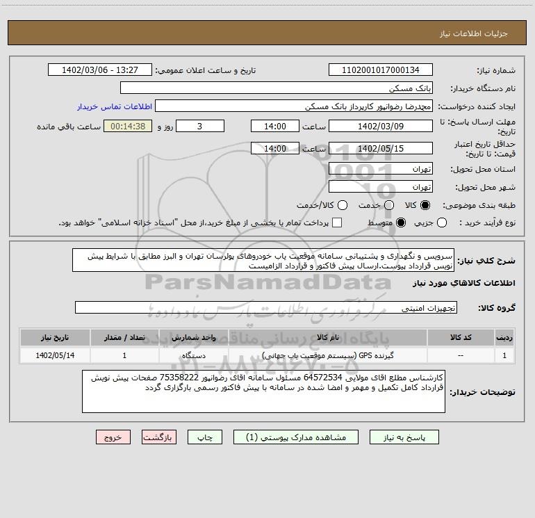 شرح کلی نیاز: سرویس و نگهداری و پشتیبانی سامانه موقعیت یاب خودروهای پولرسان تهران و البرز مطابق با شرایط پیش نویس قرارداد پیوست.ارسال پیش فاکتور و قرارداد الزامیست