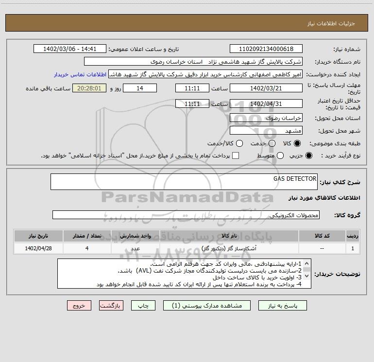 1 -- آشکارساز گاز (دتکتور گاز) عدد 4 1402/04/28