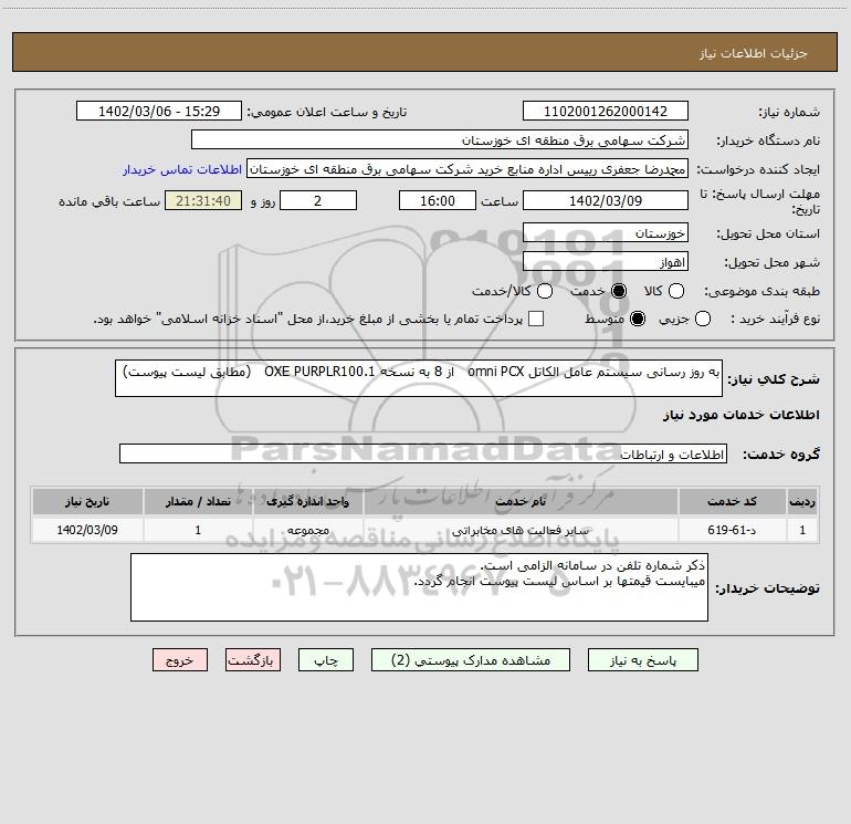 نام دستگاه خریدار:شرکت سهامی برق منطقه ای خوزستان