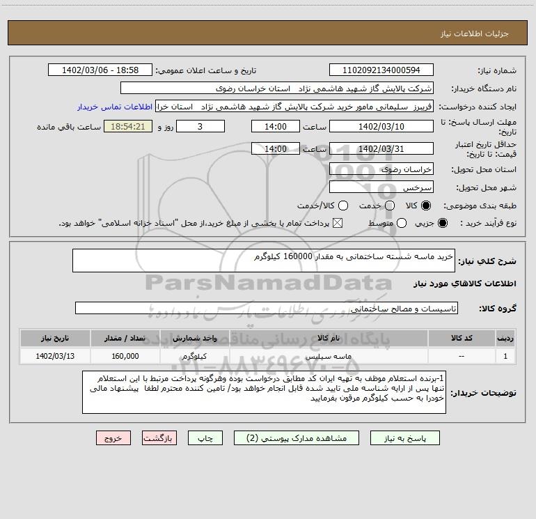 نام دستگاه خریدار:شرکت پالایش گاز شهید هاشمی نژاد استان خراسان رضوی