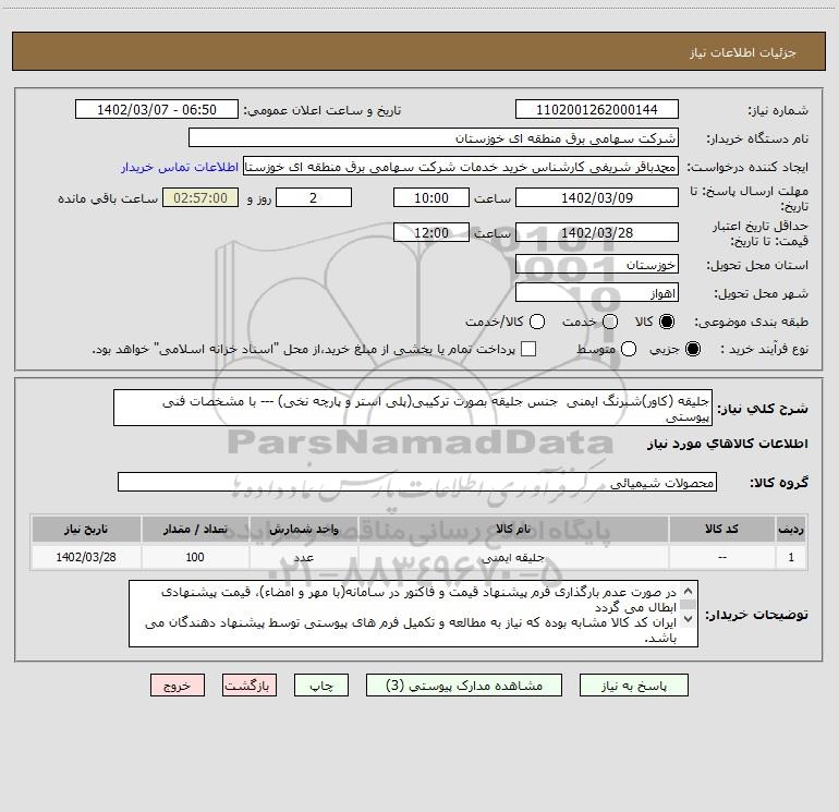 نام دستگاه خریدار:شرکت سهامی برق منطقه ای خوزستان