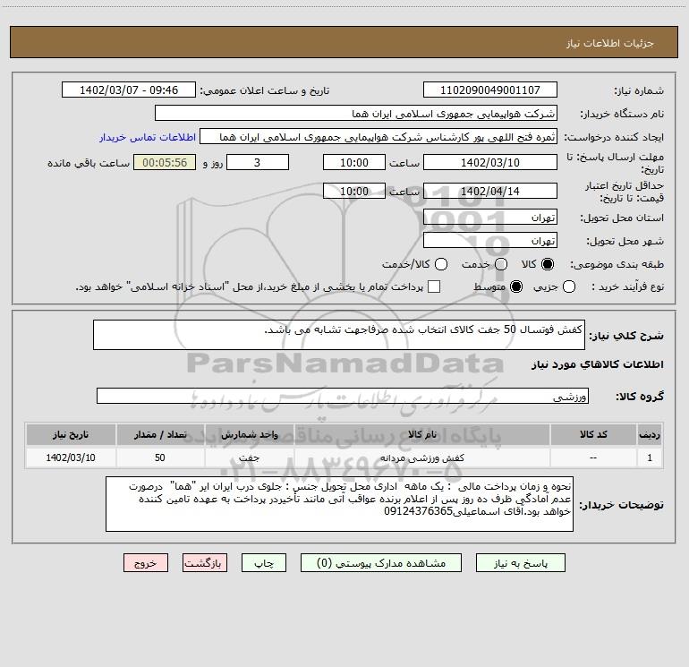 شرح کلی نیاز: کفش فوتسال 50 جفت کالای انتخاب شده صرفاجهت تشابه می باشد.