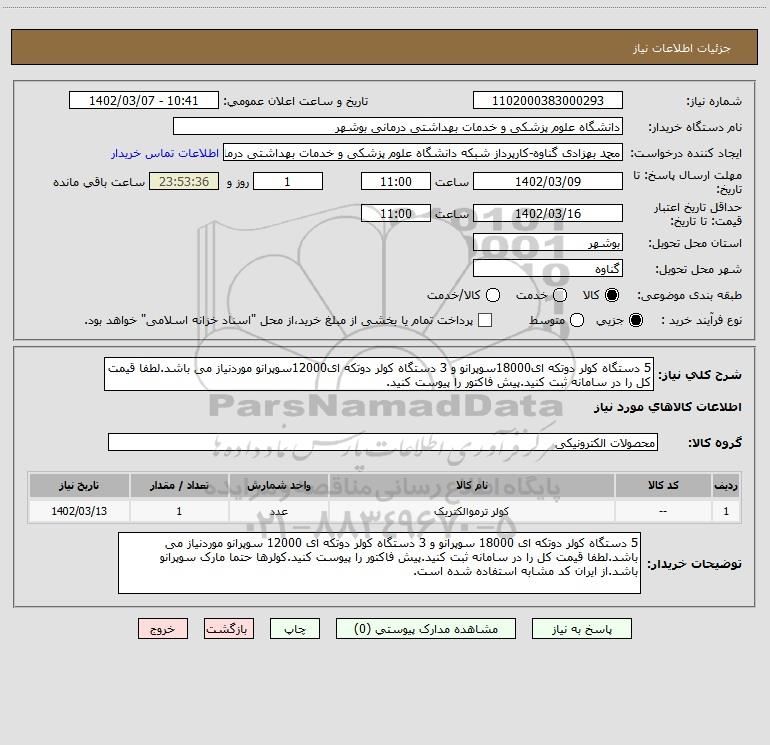 نام دستگاه خریدار:دانشگاه علوم پزشکی و خدمات بهداشتی درمانی بوشهر