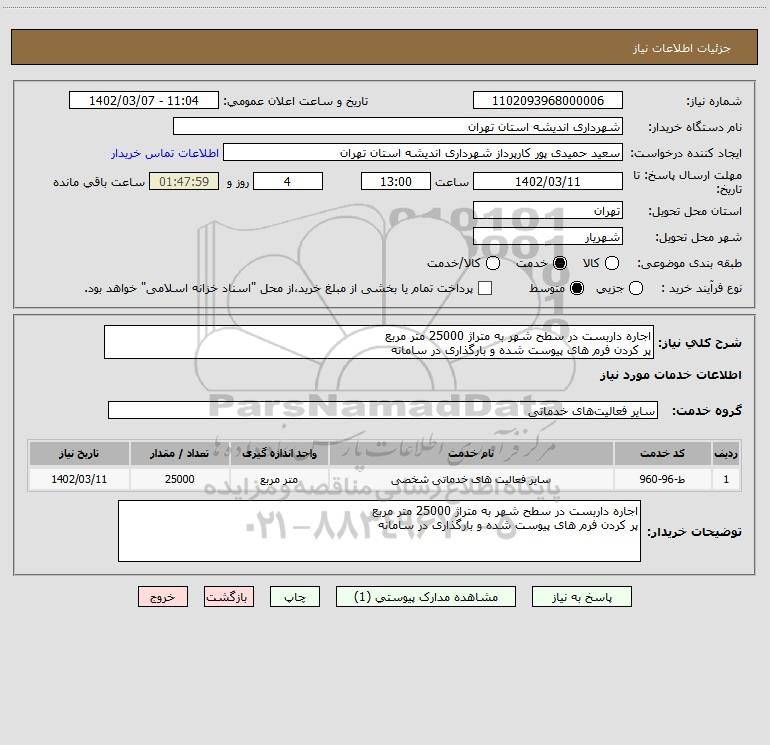 شرح کلی نیاز: اجاره داربست در سطح شهر به متراژ 25000 متر مربع