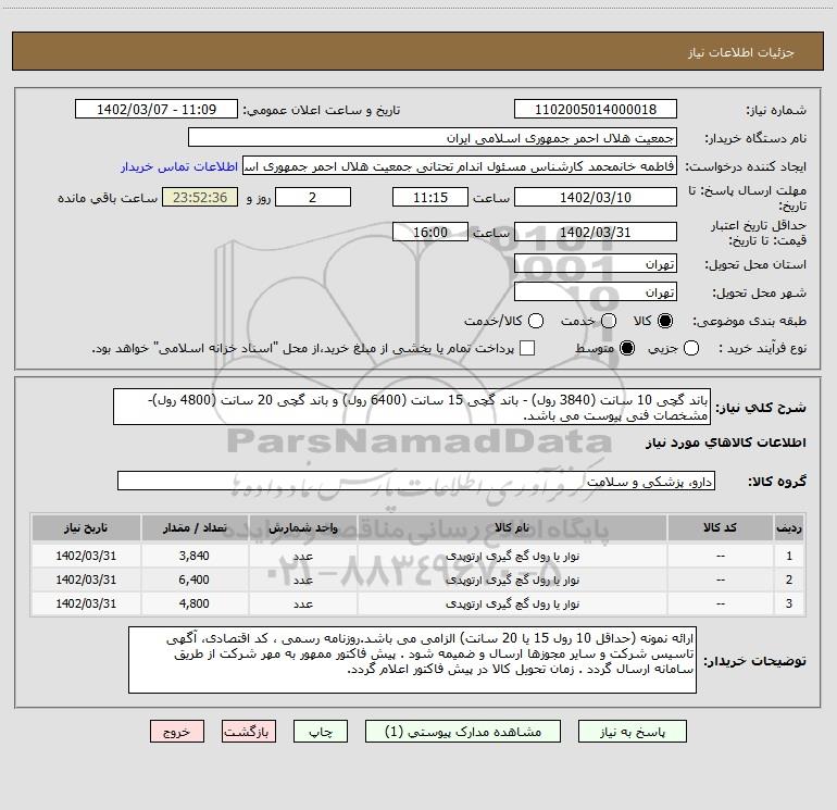 استعلام باند گچی 10 سانت (3840 رول) - باند گچی 15 سانت (6400 رول) و باند گچی 20 سانت (4800 رول)- مشخصات فنی پیوست می باشد., استعلام باند گچی 10 سانت (3840 رول) - باند گچی 15 سانت (6400 رول) و باند گچی 20 سانت (4800 رول)- مشخصات فنی پیوست می باشد.