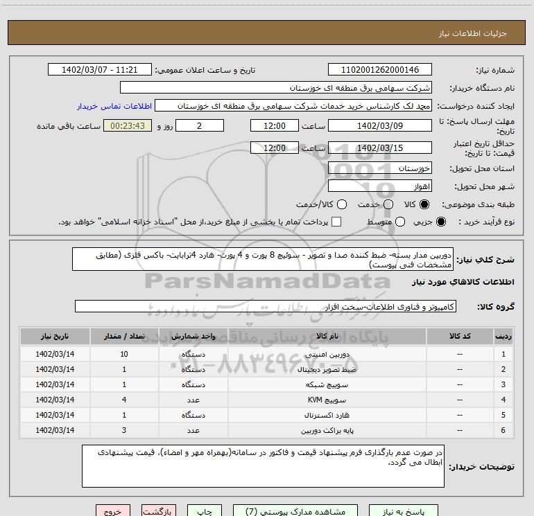 | 4 | -- | سوییچ KVM | عدد | 4 | 1402/03/14 |