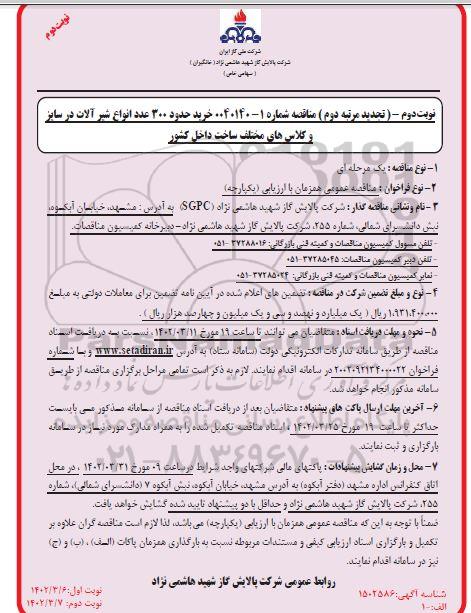 (تجدید مرتبه دوم ) مناقصه شماره 1 - 0040140 ؟