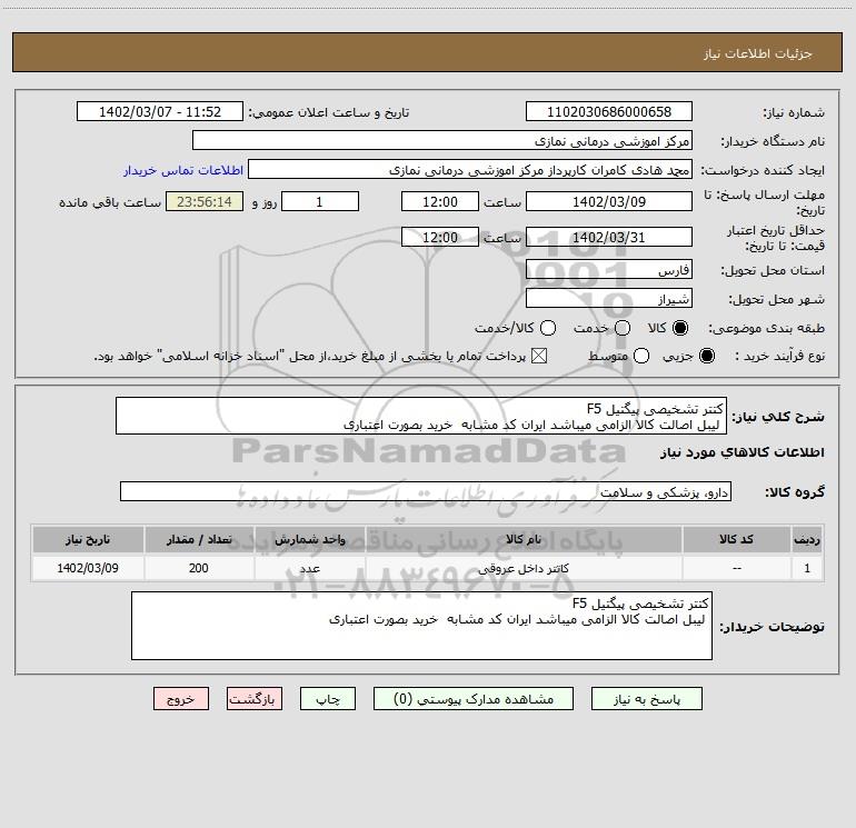نام دستگاه خریدار:مرکز اموزشی درمانی نمازی