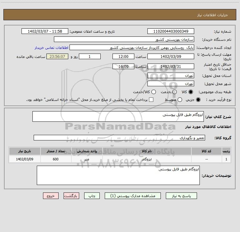 | 1 | -- | ایزوگام | متر | 600 | 1402/03/09 |